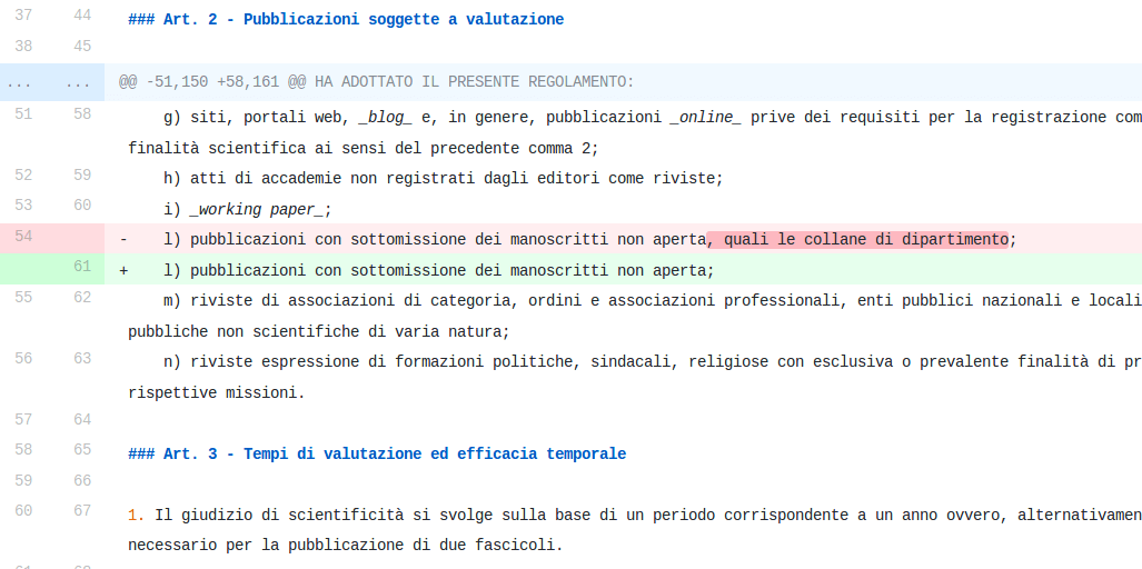 Con quest’ultimo aggiornamento mi son stufato e ho deciso di trascrivere i regolamenti dal PDF nel formato Markdown, in modo da poter confrontare le differenze tra le varie versioni.